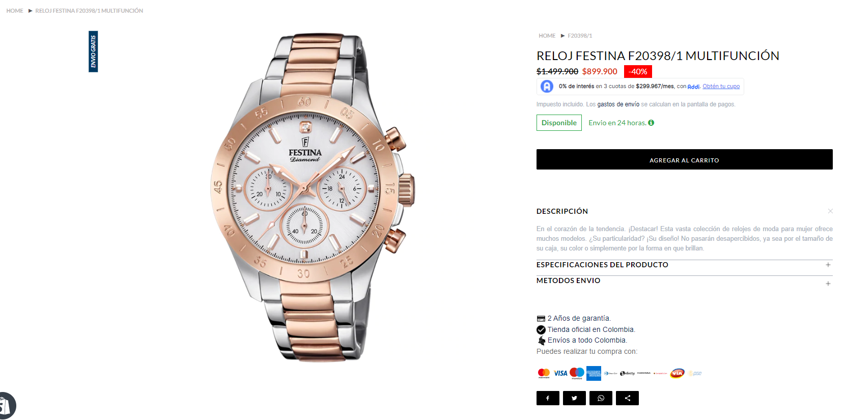 Addi mostrará la información de tu compra de forma clara y transparente. La aprobación del crédito está sujeta al estudio realizado por Addi. *El 0% de interés aplica para compras hasta de $600.000, diferidas a 3(tres) cuotas. Lee aquí los Términos y Condiciones. Para mas información, ingresa a https://co.addi.com/preguntas-frecuentes
